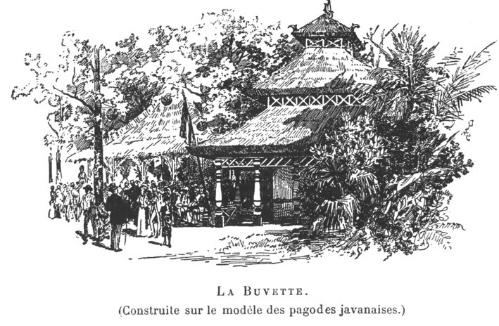 L’exposition universelle djuga memamerkan desa2 lain, bukan desa Djawa sadja. Di sana bisa dilihat pula desa Asia lain dan desa Afrika. Apalagi karena waktu itu tuan rumah Prantjis masih “punja” Indochine jang terdiri dari Vietnam (disebut Cochinchine), Kambodja dan Laos. Itulah asal mula istilah pagoda, seperti pada Pagode d’Angkor atau Pagode Villenour. Warung di desa Djawa konon dibangun seperti model pagodes javanaises. Pagodes, dengan kata lain, merupakan sebutan umum dalam bahasa Prantjis untuk tjandi.