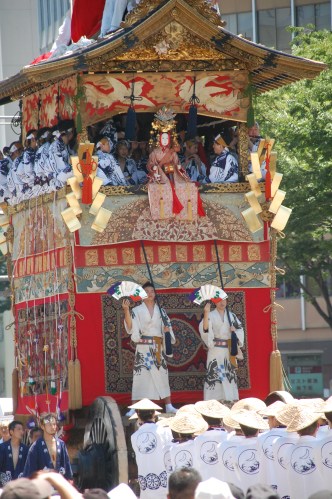 Ketika dimulai pada tahun 869, Gion Matsuri merupakan upatjara penjutjian menghadapi bentjana jang dipertjaja sebagai amarah Kamisama. Sekarang Gion Matsuri merupakan festival para pengusaha jang berbentuk arak2an Yamaboko, sematjam pedati beroda kaju jang ditarik oleh manusia. Yamaboko dihiasi barang2 antik, baik jang bermakna ritual agama, maupun jang punja nilai seni. Tidak ketinggalan djuga permadani dari Eropa atau Tiongkok jang sampai ke Djepang di abad pertengahan melalui Jalan Sutra. Yamaboko djuga masih mengangkut orang jang memperagakan gerak gerik tarian tradisional dan para pemusik jang membunjikan instrumen tiup dan beduk, apa jang disebut musik gagaku.