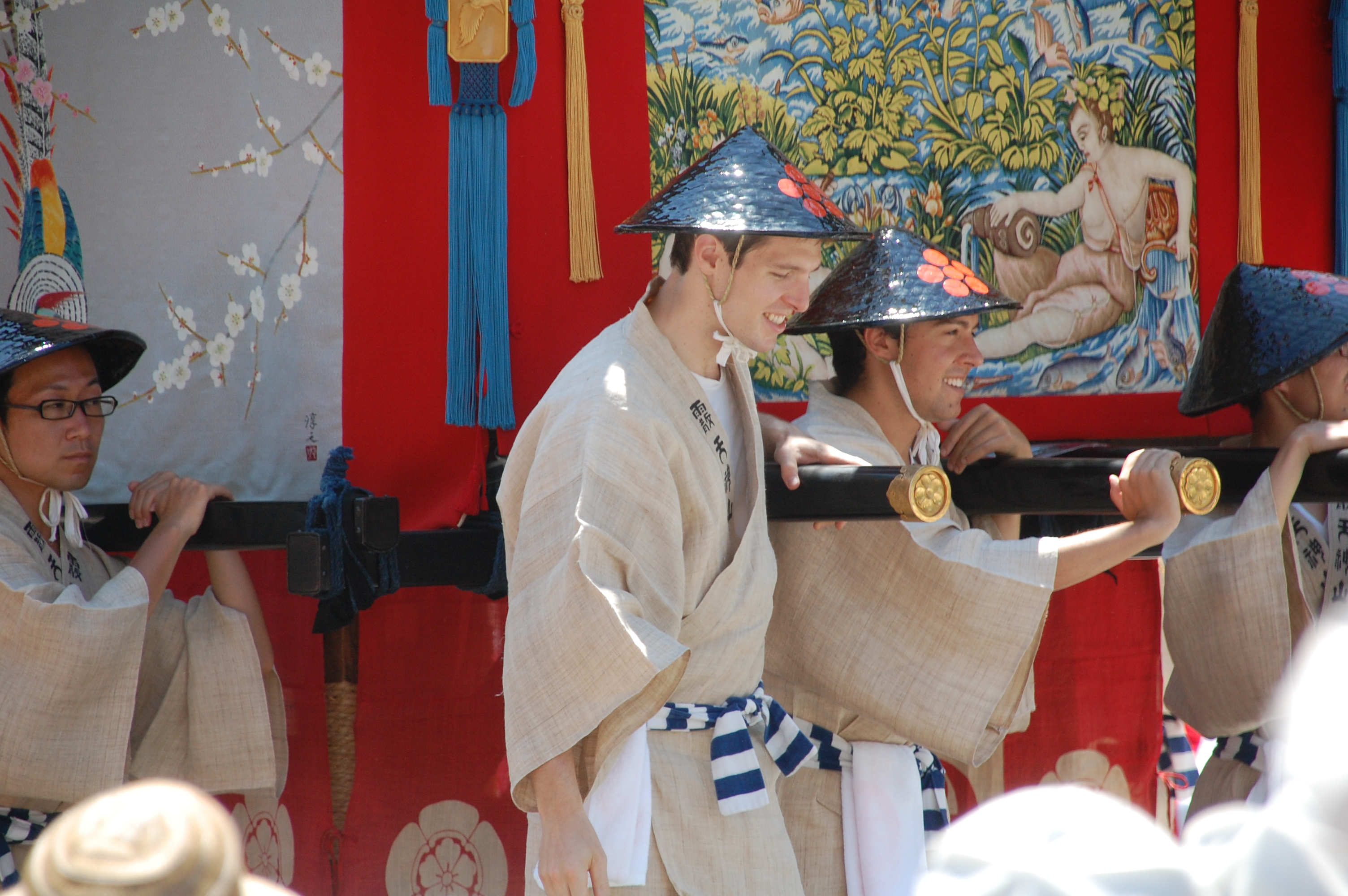 Berbeda dengan dua festival lain, karena berlangsung sekitar sebulan, Gion Matsuri njaris melibatkan segenap warga Kyoto, termasuk warga asing. Banjak djuga bulé jang ber-senang2 menjeret Yamaboko sambil mengenakan jimpei, pakaian tradisional musim panas. Hitung2 ikut festival tradisional, mungkin begitu perhitungan mereka, walaupun suhu mentjapai 38 deradjat Celcius. Banjaknja peserta mengundang banjaknja pengundjung, sekaligus memberi kesempatan para pedagang makanan dan minuman untuk mendjadjakan dagangan di pinggir djalan. Inilah jang membedakan Gion Matsuri dengan Aoi Matsuri atau Jidai Matsuri. Gion Matsuri terasa lebih meriah!