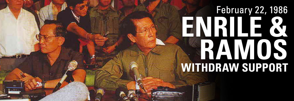 Tentu sadja Enrile dan Ramos menolak mentah2 tuduhan Marcos. Mereka, jang ketika mengikuti siaran televisi Marcos mendjadi seperti orang jang terikat tangannja (tidak bisa berbuat apa2), segera menegaskan kepada wartawan media tjetak jang ada bahwa tidak ada maksud pada mereka untuk merebut kekuasaan Marcos dan membentuk sebuah junta militer. Bersamaan dengan itu, mereka menjatakan dukungan penuh kepada Cory Aquino, pihak oposisi.