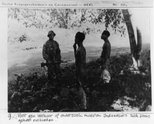 Foto inilah jang tampaknja bisa memberi pendjelasan. Pada foto jang lebih gelap ini terlihat tiga orang. Dua orang Indonesia tidak berpakaian, mereka hanja membawa pakaian. Sedangkan orang lain jang djuga berwadjah Indonesia mengenakan seragam militer dan membawa senapan. Menariknja di bawah foto ini tertera kalimat bahasa Belanda: “Voor een verhoor of onderzoek moesten Indonesiërs zich soms geheel ontkleden”, artinja untuk interogasi atau penjidikan orang2 Indonesia kadang2 harus sepenuhnja melepas busana.