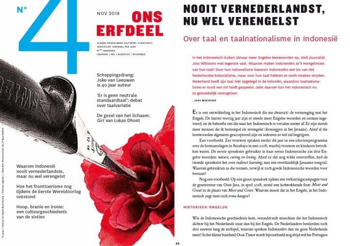 Waarom is Indonesië het enige land ter wereld dat de taal van de voormalige kolonisator helemaal niet meer gebruikt? Ik was er aanvankelijk van overtuigd, volgens het historische fanatisme dat ik uit Indonesië had meegenomen, dat het Indonesische nationalisme erin was geslaagd de Nederlanders en alles wat naar Nederland riekt te verdrijven. Vooral dankzij de Soempah Pemoeda (eed van de jeugd), die in 1928 door jonge nationalisten werd afgelegd, werd het Nederlands niet meer gebruikt in Indonesië. De jongeren spraken toen af: één land, één natie en één taal. Maar beetje bij beetje verlaat ik deze overtuiging, die mijns inziens geen historische basis heeft.