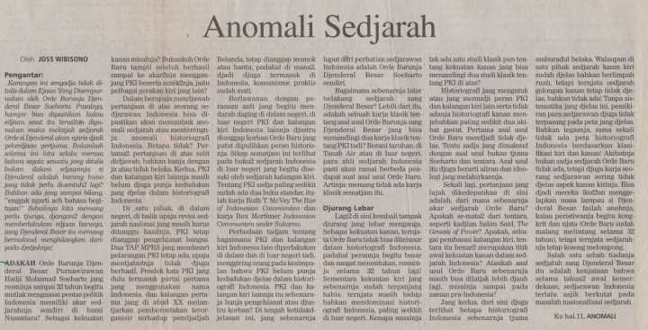 Dalam berupaja mendjawab pertanjaan di atas seorang sedjarawan Indonesia bisa dipastikan akan menumbuk anomali sedjarah atau mentèrèngnja: anomali historiografi Indonesia. Betapa tidak? Per-tama2 pertanjaan di atas sulit didjawab, bahkan hanja dengan ja atau tidak belaka. Kedua, PKI dan kalangan kiri lainnja masih belum djuga punja kedudukan jang djelas dalam historiografi Indonesia.