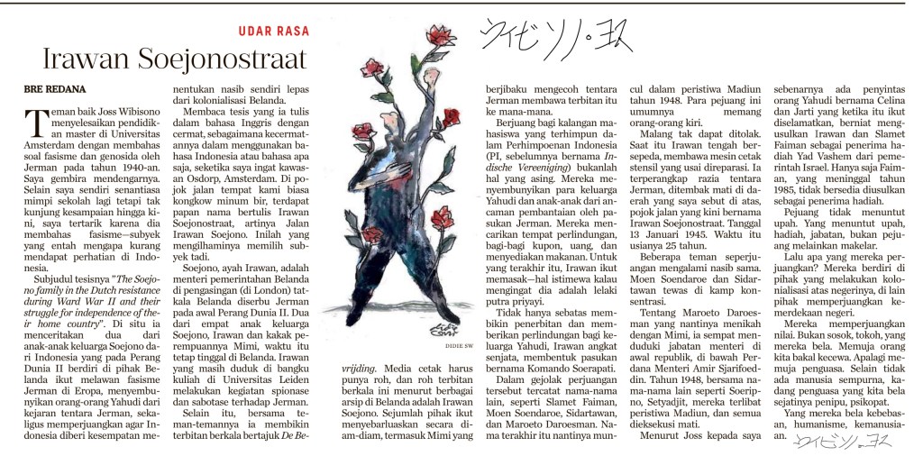 Sepandjang tahun 2021 ini aku menekuni satu keluarga jang luar biasa tapi sajangnja tidak banjak dikenal di tanah air. Irawan Soejono, anak ketiga keluarga Soejono, sekarang sudah mulai ada jang tahu. Terutama karena namanja mendjadi nama djalan di Osdorp, Amsterdam barat. Tapi ajah Irawan jaitu Radèn Ario Adipati Soejono, sedikit sekali jang tahu. Belum lagi Mimi, kakak Irawan, lebih banjak lagi orang jang tidak tahu tokoh jang bernama lengkap Soetiasmi Soejono ini. Suami Mimi jaitu Maroeto Daroesman mungkin ada jang sudah tahu, maklum dia diexekusi mati di Madiun pada 19 desember 1948.