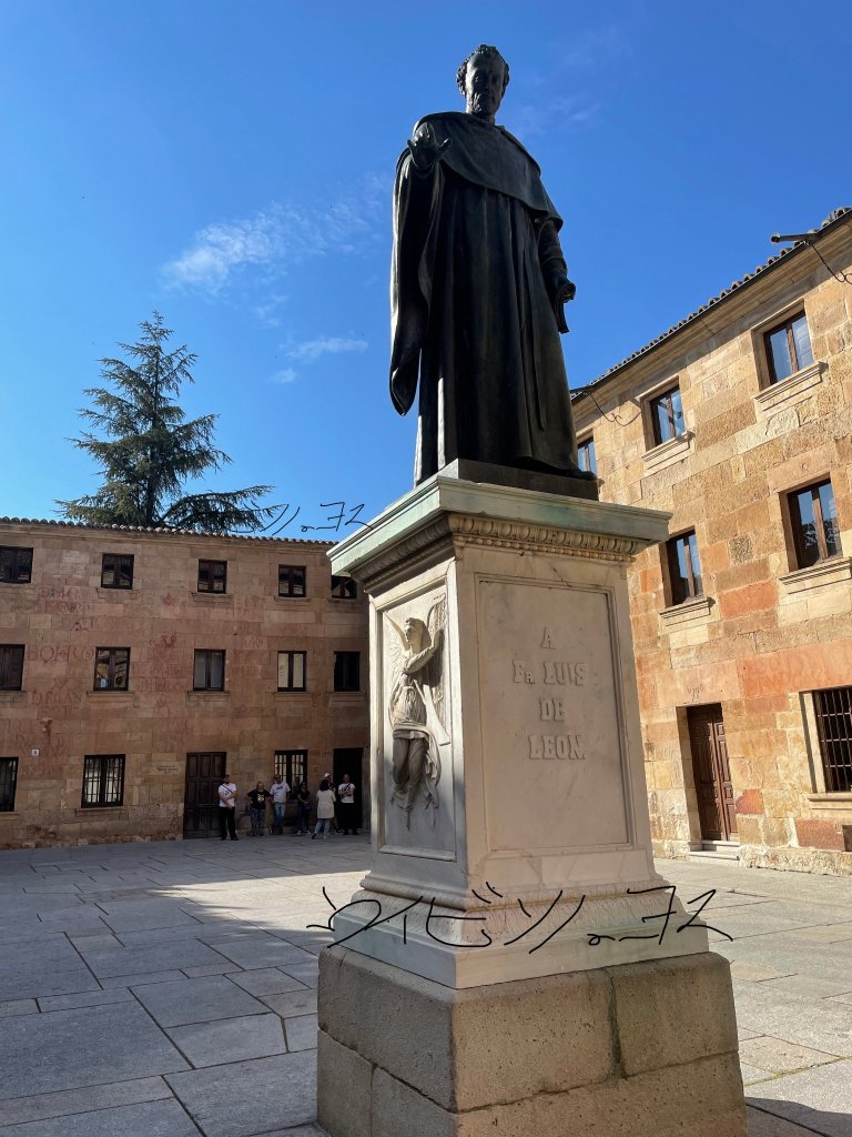 Di depan gedung kuno Universitas Salamanca terpampang patung Luis de León dalam pakaian rahib dan di dalam gedung terdapat satu aula jang menjandang namanja, Aula Fray Luis de León. Penggunaan kata ‘aula’ ini menarik, karena biasanja ruang2 Spanjol menggunakan istilah ‘sala’ jang memang berarti ruang itu. Oh ja, fray Luis de Léon hidup antara 1527 dan 1591.
